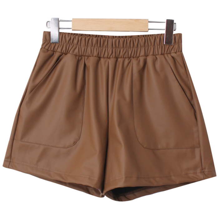 여성 겨울 레더 반바지 포켓 하프팬츠