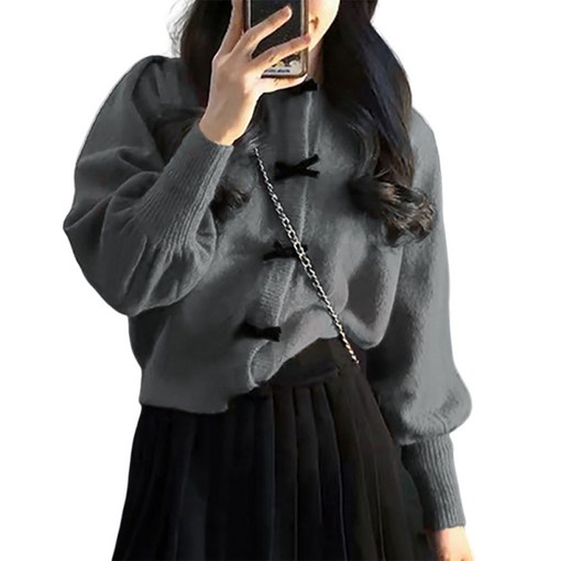 여성가디건 루즈핏 라운드넥 니트 가디건 리본 포인트 시보리 가디건 H45169