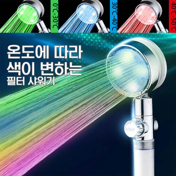 LED 샤워기 불빛샤워기 온도감지 필터 토네이도 샤워기 헤드 녹물제거 욕실 온오프 화장실 P031