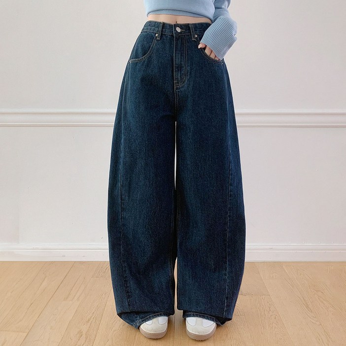 플랜데이 여성용 숏미디움롱 기장 에즈 절개 워싱 와이드 데님 팬츠