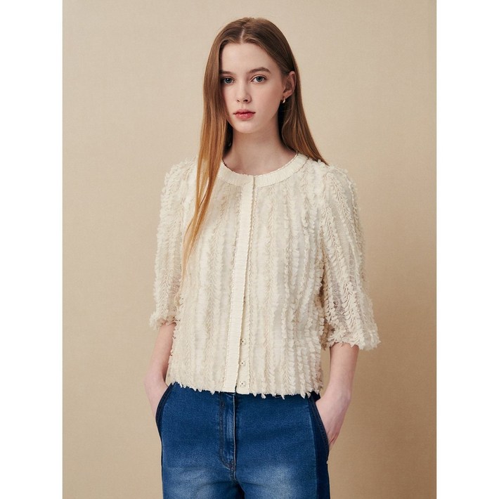 지고트 JR3A0BL161플라워 자수 텍스처 블라우스