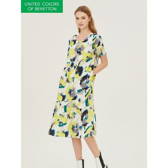 여성 스퀘어 넥 뒷 리본 벌룬 원피스