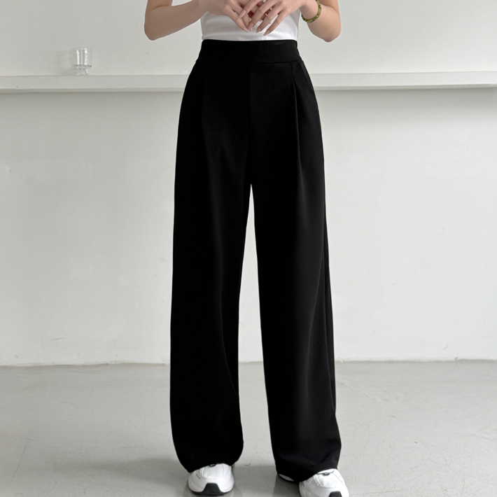 제제룩 여성용 일자 와이드 스판 밴드 핀턱 팬츠 바지 빅사이즈까지