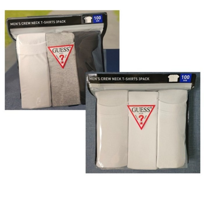 EHM 게스티셔츠 게스 guess 크루넥 반팔 티셔츠 3장 1세트 블랙 그레이 화이트 교복 이너 여름 반팔티 면티