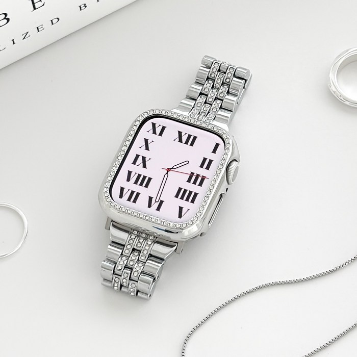 링고룸 애플워치 호환 클래식 큐빅 메탈 스트랩 밴드 조절기 증정